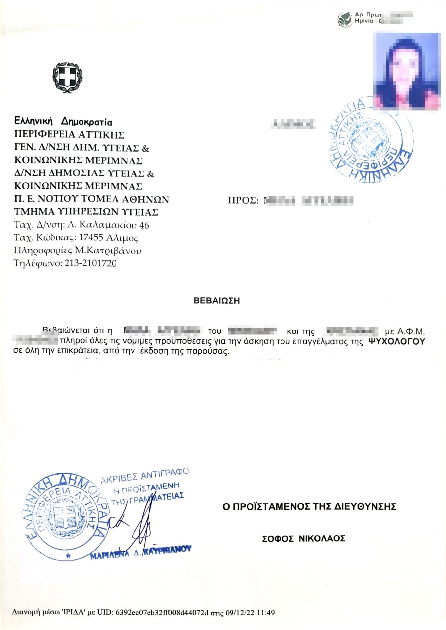- Έκδοση Άδειας Άσκησης Επαγγέλματος Ψυχολόγου στην Ελλάδα.