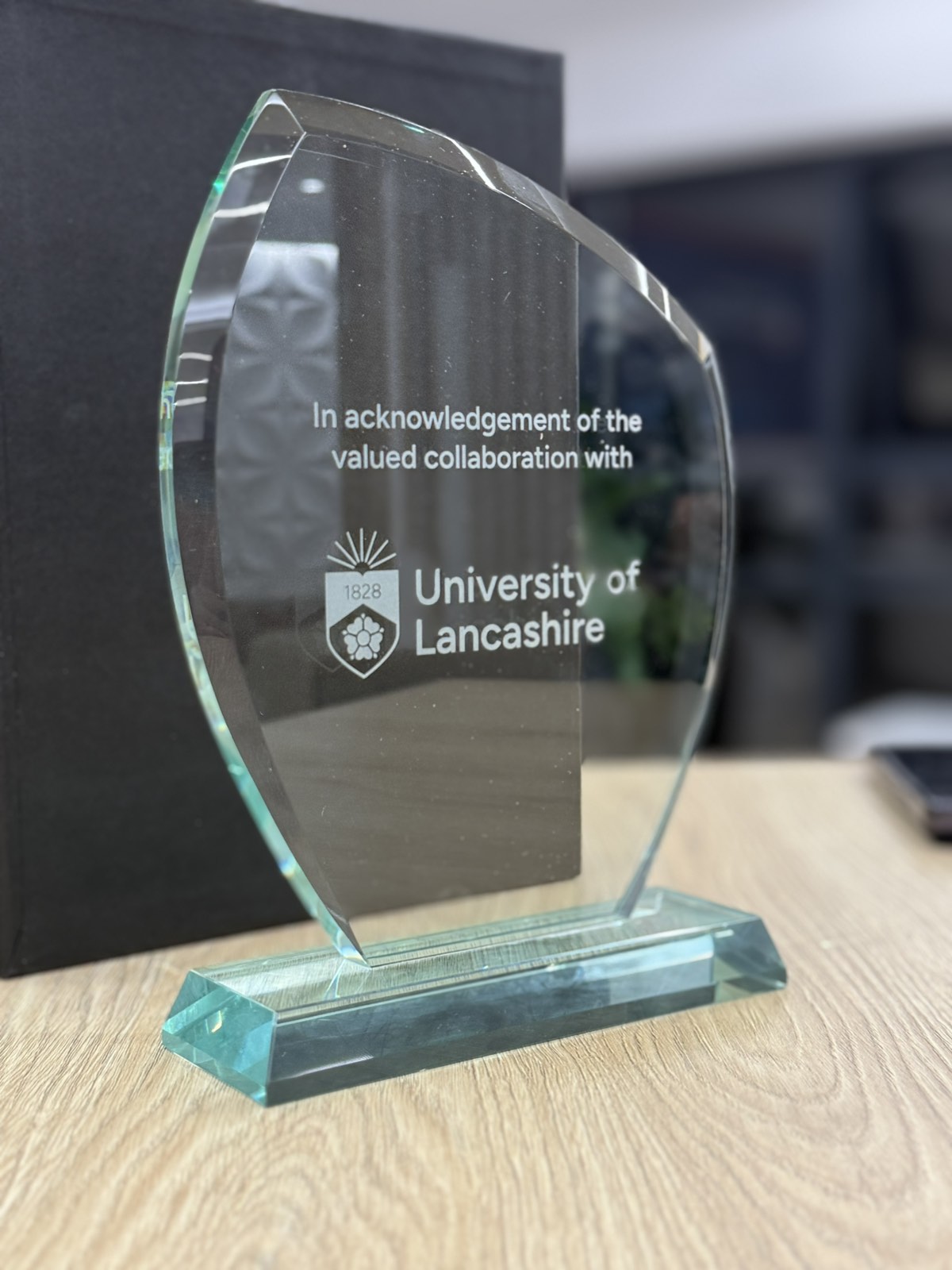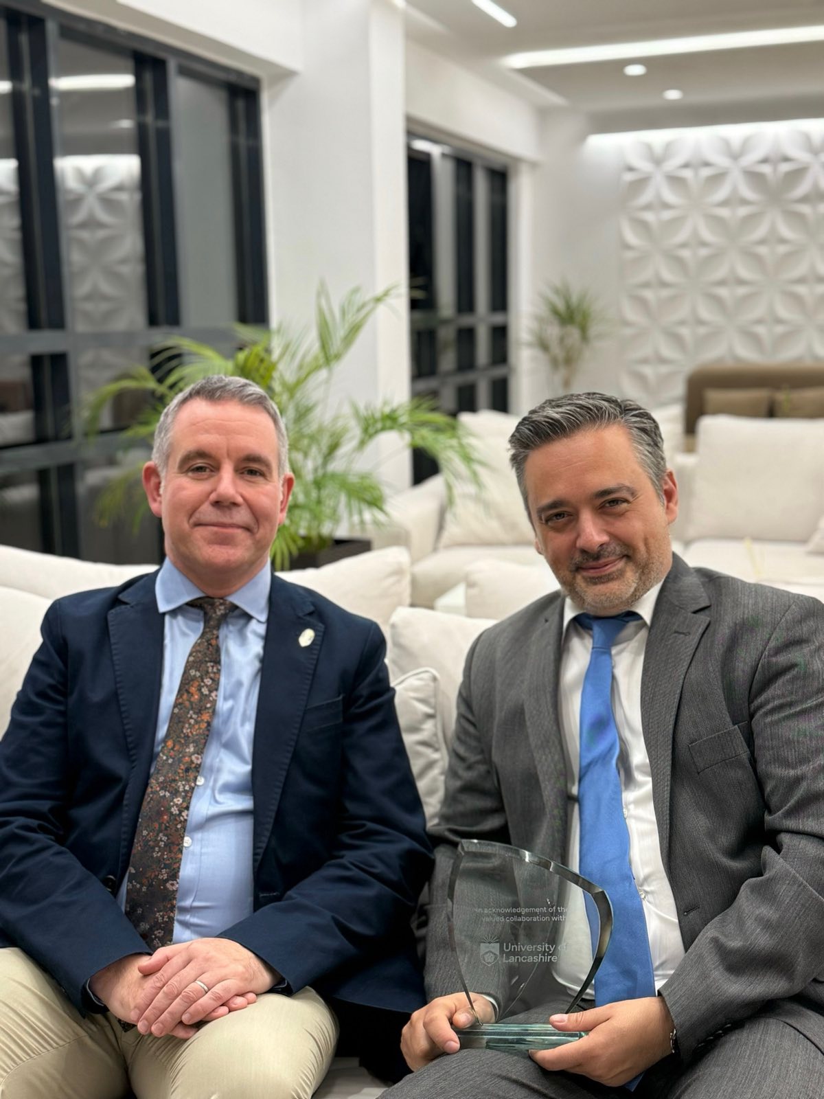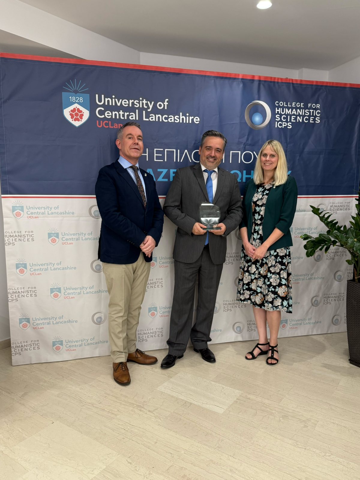 Ως ένδειξη αναγνώρισης της συνεργασίας και της συνεχούς κοινής προσπάθειας, οι εκπρόσωποι του University of Lancashire προσέφεραν ένα τιμητικό βραβείο, το οποίο αποτυπώνει τον σεβασμό, την εκτίμηση και τη σταθερή εκπαιδευτική σχέση που μας συνδέει από το 2007, η οποία εξελίσσεται και ενισχύεται διαρκώς.