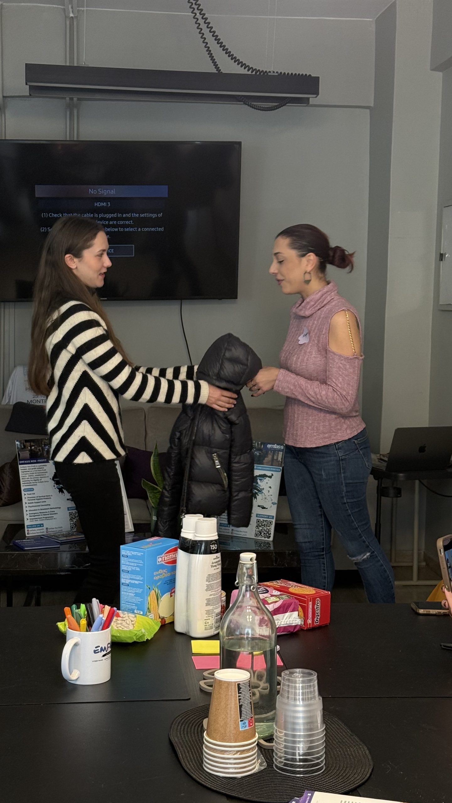 Παράλληλα, μέσω του Κέντρου Διαχείρισης Προμηθειών της οργάνωσης, παρέχουν βασικά αγαθά και καλύπτουν εξατομικευμένα αιτήματα. (Πηγή: https://emfasisfoundation.org/about-us)