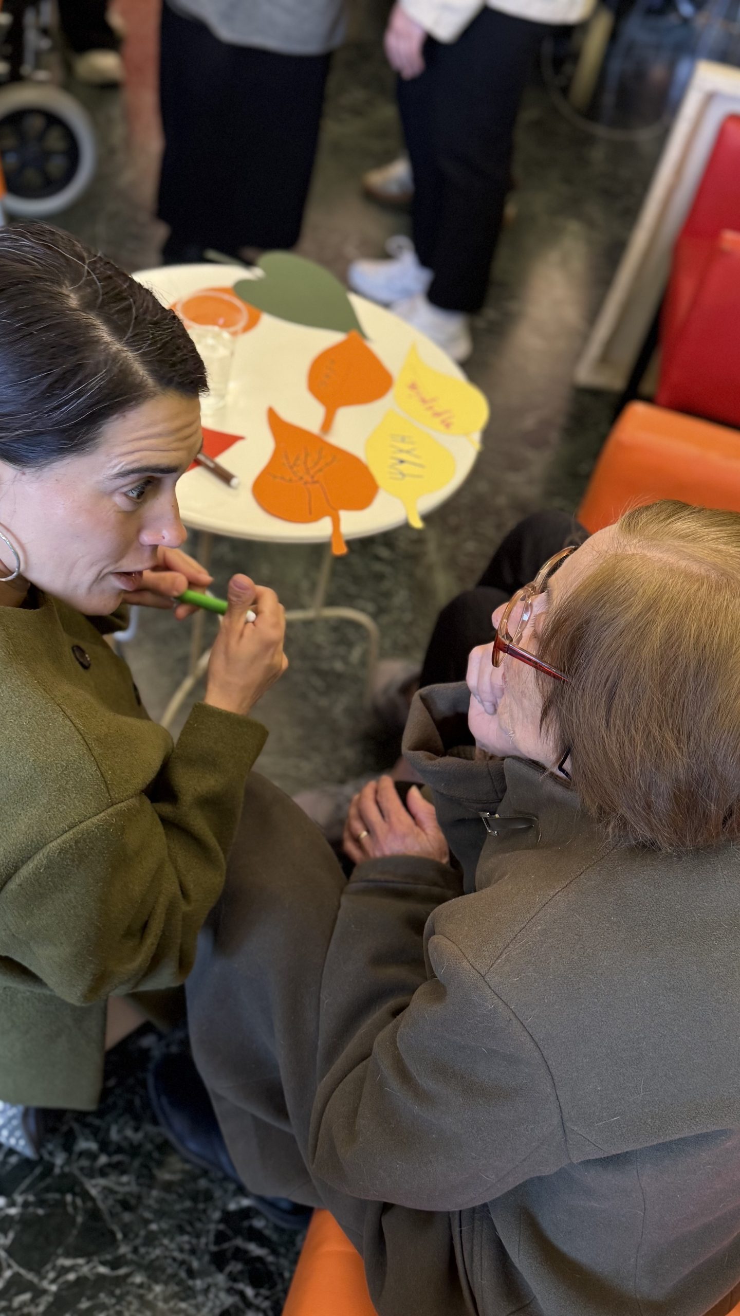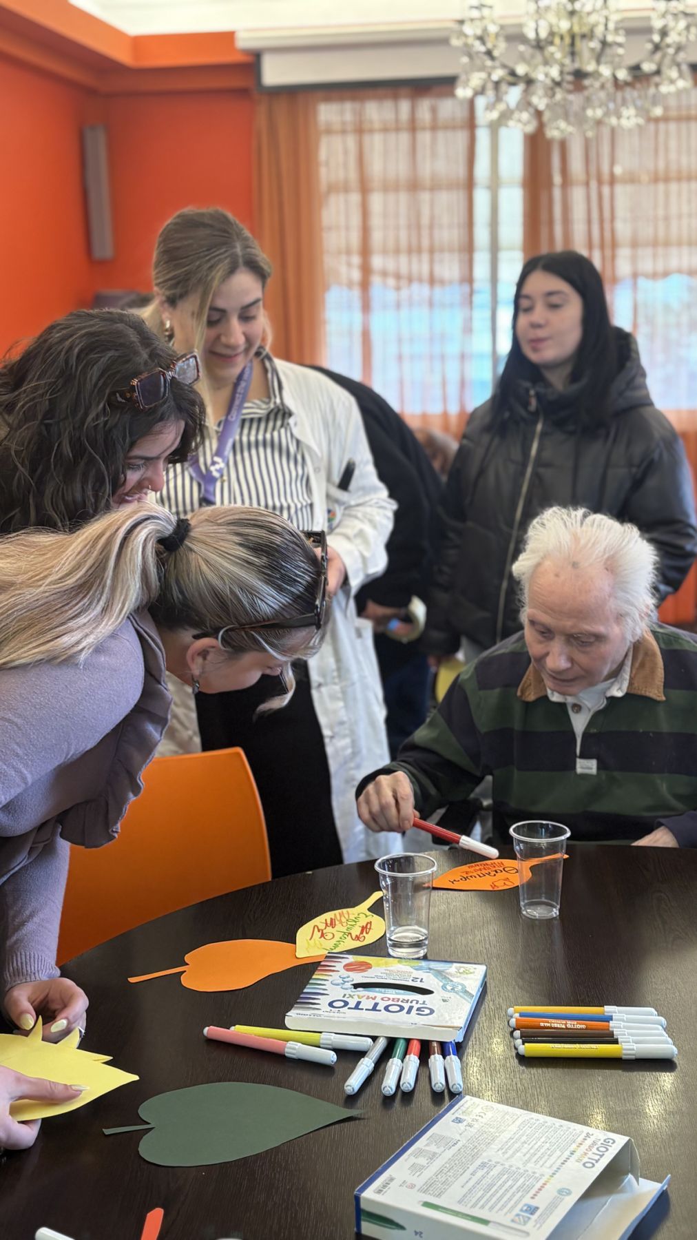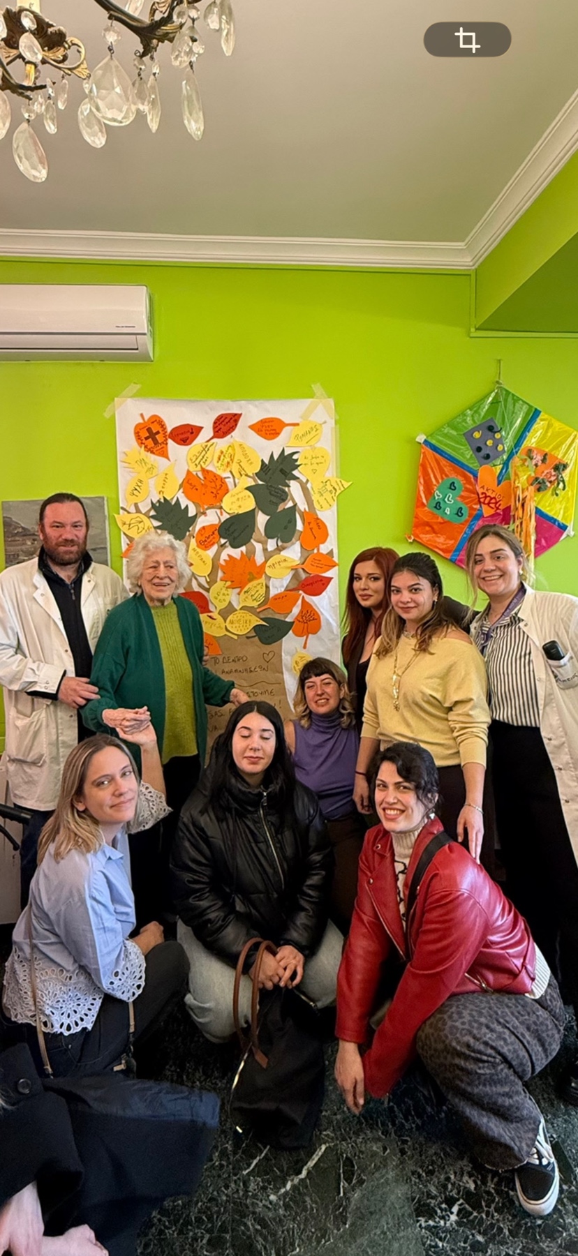 Με τη βοήθεια των φοιτητών, οι ένοικοι κλήθηκαν να γράψουν σε κάθε φύλλο λέξεις που τους εξέφραζαν ή τους έρχονταν αυθόρμητα στο μυαλό, όπως «αγάπη», «θαλπωρή», αλλά και πιο προσωπικές επιλογές τους όπως «σοκολάτα» και «μουσική». Στη συνέχεια, τα φύλλα τοποθετήθηκαν στο δέντρο, δημιουργώντας μια πολύχρωμη και συμβολική σύνθεση, γεμάτη συναισθήματα και αναμνήσεις.